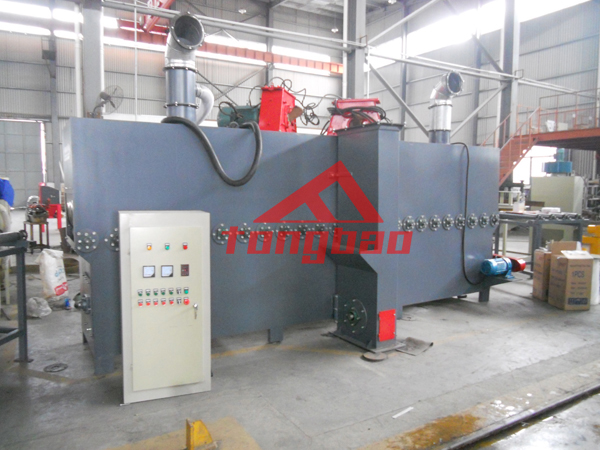 杭州某石材廠家拋丸生產(chǎn)線裝車發(fā)貨,該拋丸生產(chǎn)線采用輥道通過式輸送,內(nèi)部兩臺拋丸機同時拋射,覆蓋面積大,拋射均勻,效率高。