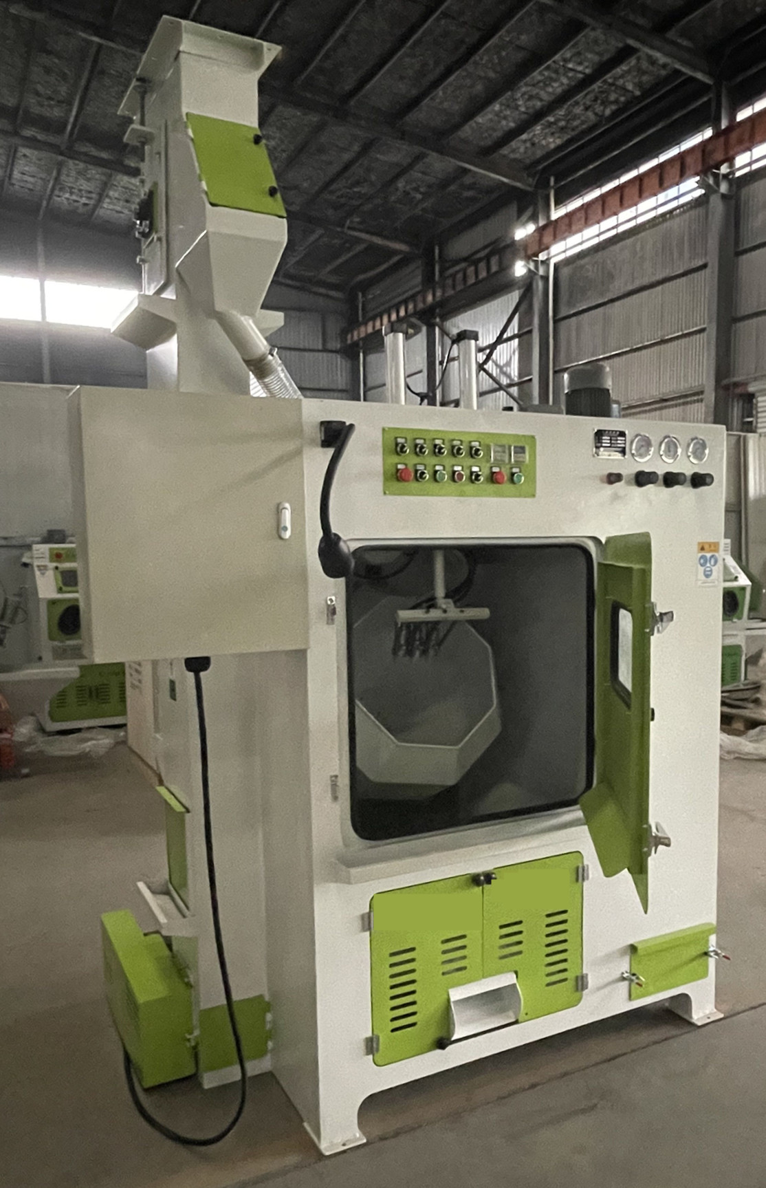 | 應(yīng)用范圍: 本機(jī)適用于中、小零件批量生產(chǎn)。 如鉆頭 密封圈骨架 開孔器 螺絲批頭 紐扣 拉鏈 套筒等小五金產(chǎn)品。的表面噴砂處理,達(dá)到去氧化皮殘?jiān)?nbsp;刮痕;也可用于噴涂電鍍前的預(yù)處理,以提高涂(鍍)層表面的附著力;也可以用于工件 表面的光飾磨砂強(qiáng)化處理等。 |